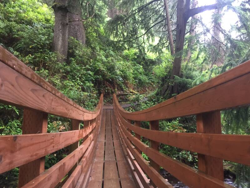 During the hike to the beach, there is lots to see. It’s a one mile round trip hike through old growth forest. Take your time and enjoy your surroundings. This rumbling creek and a wooden hanging bridge give an explorer lots of reasons to stop and enjoy.